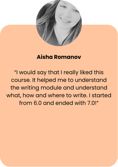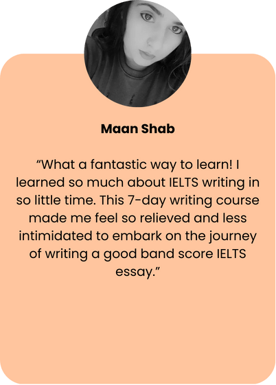 This course was built to give you clarity, confidence, and control in your IELTS Writing. Your success is my priority, and I’m confident IELTS Writing 101 will equip you with the tools to finally write like a Band 7+ test-taker.
